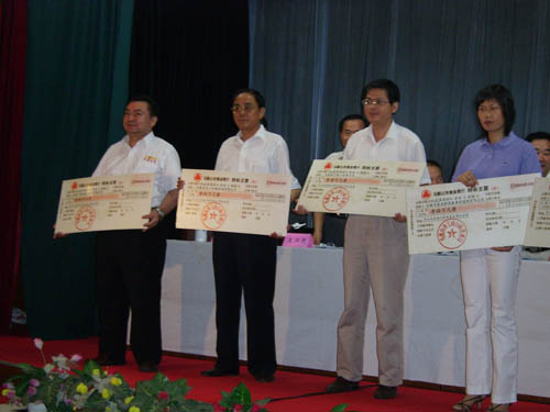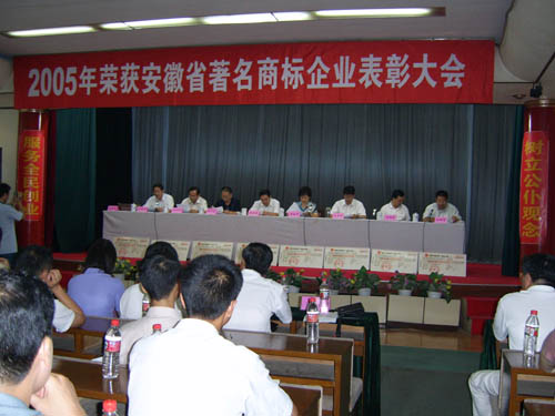 2006年7月26日下午,馬鞍山市2005年獲省著名商標企業(yè)表彰大會在市政府東二樓會議室舉行,出席本 次會議的主要領(lǐng)導(dǎo)有省工商局副局長黃家華、市人大常委會副主任杜永田、市政府副市長劉榮華、市政協(xié) 副主席孫文植、市政府副秘書長王興無、省工商局商標局局長劉國建等。